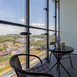 Ten komfortowo wyposażony apartament typu studio może pomieścić 2 gości. Składa się z salonu z aneksem kuchennym, balkonu oraz łazienki z prysznicem. Dużym atutem jest klimatyzacja dbająca o odpowiednią temperaturę wnętrza. Niezbędne wyposażenie apartamentu w kuchenkę mikrofalową czy też płytę indukcyjną pozwala czuć się jak w domu. Wnętrze jest nowocześnie i gustownie urządzone. Na balkonie znajdują się meble, na których można wypić kawę i oglądać życie Warszawy z 11. piętra, niezależnie od pogody, dzięki szklanemu zabezpieczeniu. Na dobry początek pobytu zapewniamy gościom bezpłatny zestaw kosmetyków, ręczniki oraz pościel.