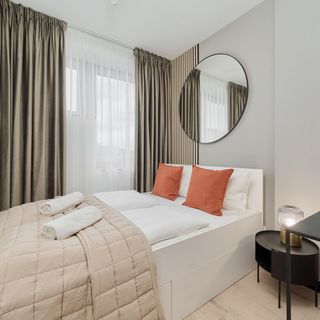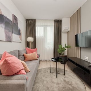 Komfortowy apartament o powierzchni 30 m2 oferuje zakwaterowanie dla 4 osób. Mieszkanie składa się z salonu z rozkładaną sofą, aneksem kuchennym, sypialni z łóżkiem małżeńskim oraz łazienki z prysznicem. Wnętrze urządzone jest w nowoczesnym stylu, z akceptami drewna nadającego całości stylowego charakteru. To doskonały wybór dla każdego, kto ceni sobie wygodę i funkcjonalność, ale także estetykę. Komfort pobytu zapewnia wiele udogodnień, takich jak bezpłatne łącze WiFi, telewizor z płaskim ekranem oraz niezbędne wyposażenie kuchenne i łazienkowe. W pełni wyposażona kuchnia oferuje wszystkie urządzenia do samodzielnego gotowania, takie jak płyta indukcyjna, kuchenka mikrofalowa, ekspres do kawy i czajnik. Goście mają również dostęp do niezbędnego wyposażenia łazienkowego (suszarka do włosów). Na dobry początek zakwaterowania zapewniono gościom bezpłatny zestaw kosmetyków, ręczniki oraz pościel. Możliwość korzystania z pralni znajdującej się na parterze budynku.