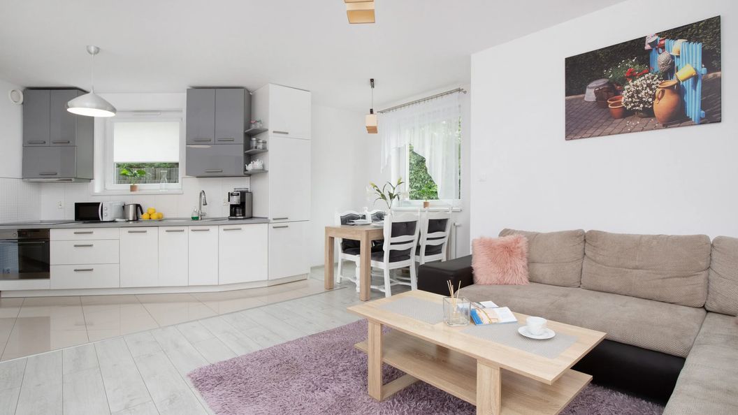 Elegancki i jasny apartament zlokalizowany parterze obiektu na osiedlu przy ul. Myśliwskie Wzgórze, to przestrzeń oferująca możliwość zakwaterowania 4 osób. Niezwykłe mieszkanie w Gdańsku jest idealną propozycją wakacyjnego noclegu dla rodziny z dziećmi, a także przyjaciół. W skład powierzchni mieszkalnej apartamentu wchodzi salon ze stołem jadalnianym i aneksem kuchennym, sypialnia z łóżkiem małżeńskim oraz łazienka z prysznicem. W części dziennej znajduje się wygodna, rozkładana sofa do spania. Z apartamentu można wyjść na balkon z meblami ogrodowymi, dzięki czemu można się na nim cieszyć kubkiem porannej kawy, chłonąc widok na spokojną okolicę. Wykończenie mieszkania z najwyższą dbałością o detale, wykonane w spokojnej kolorystyce zaspokoi zmysł estetyczny Gości, którzy nie uznają kompromisów w kwestii wygody i stylu. Przestrzeń obiektu jest funkcjonalnie zaprojektowana, wychodząc naprzeciw wszelkim potrzebom podróżnych. Udogodnienia obejmują wyposażenie multimedialne (telewizor z kanałami kablowymi oraz bezpłatne łącze internetowe Wi-Fi), zaplecze kuchenne i łazienkowe (zmywarka, pralka, suszarka do włosów). Aby ułatwić rozpoczęcie każdego pobytu, na Gości czeka bezpłatny zestaw kosmetyków, ręczniki i pościel.