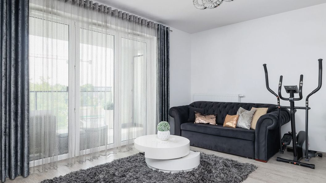 Rozkładana sofa, komplet pościeli, stolik kawowy, TV, stół z krzesłami, wyjście na balkon, rowerek stacjonarny, konsola XBOX