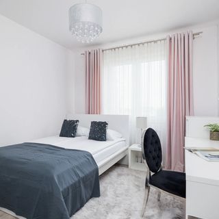 Łóżko podwójne, komplet pościeli, szafa, TV