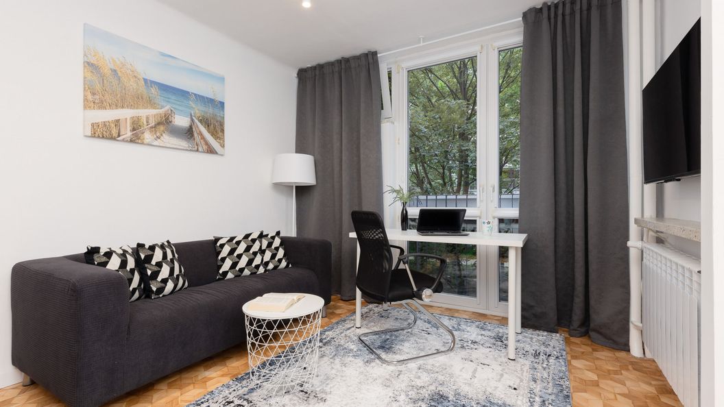 Komfortowy apartament zlokalizowany w biznesowej dzielnicy Warszawy przy ulicy Grzybowskiej, najpopularniejszej i najstarszej części Warszawy. Znakomicie rozwinięta infrastruktura z pewnością zaspokoi wszystkie codzienne potrzeby: sklep spożywczy (60 metrów od mieszkania), Centrum Handlowe Złote Tarasy i Pałac Kultury i Nauki (650 metrów od apartamentu), w okolicy znajdują się także liczne restauracje i klimatyczne kawiarnie. Lokalizacja apartamentu oferuje bogate zaplecze handlowo-usługowe, 400 metrów od apartamentu znajduje się kompleks hal targowych, gdzie można nabyć żywność lokalną i ekologiczną. Ulica Grzybowska usytuowana w samym sercu Warszawy, w wielkomiejskim kanonie nowoczesnego stylu życia obfituje w atrakcje turystyczne, zabytki i ikoniczne miejsca na mapie Stolicy. Lokalizacja bardzo dobrze skomunikowana z innymi dzielnicami Warszawy dzięki rozbudowanej sieci komunikacji miejskiej — pobliska stacja metra Rondo ONZ znajduje się zaledwie 550 metrów od apartamentu, ponadto bezpośrednie sąsiedztwo centrów handlowych, odczuwalnie wpływają na komfort pobytu. Mimo położenia w ścisłym centrum apartament otaczają liczne kompleksy parkowe i tereny zielone - 180 metrów od apartamentu znajduje się Park Mirowski, a 10-minutowy spacer pozwoli zachwycać się krajobrazem Ogrodu Saskiego.