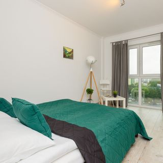Starannie zaprojektowane wnętrze apartamentu jest odpowiednie dla 4 osób - idealny na pobyt w stolicy z rodziną czy przyjaciółmi. Przestrzeń obiektu oferuje salon, osobną kuchnię, sypialnię oraz łazienkę z prysznicem. Wnętrze zachęca przytulną atmosferą dzięki przyjemnej kolorystyce, a także stylowym elementom dekoracyjnym. Część dzienna z wygodną sofą to doskonałe miejsce do odpoczynku i relaksu. Salon wyposażono także w stół z krzesłami do celebrowania wspólnych posiłków. W sypialni znajduje się podwójne łóżko małżeńskie oraz pojemna szafa. Do dyspozycji gości jest także komfortowa sofa z funkcją spania umieszczona w salonie. Do apartamentu należy także balkon z meblami ogrodowymi – wspaniale sprawdzi się na poranną kawę lub odpoczynek po dniu pełnym wrażeń. Szeroki wachlarz udogodnień oraz kompleksowe wyposażenie apartamentu w niezbędne akcesoria i sprzęty kuchenne (mikrofala, zmywarka, płyta indukcyjna) jak i łazienkowe (pralka, suszarka do włosów) gwarantuje komfort pobytu. Multimedia obejmują bezpłatne łącze internetowe Wi-Fi. Na dobry początek każdego pobytu zapewniony jest bezpłatny zestaw kosmetyków, ręczniki i pościel. Wysublimowana aranżacja apartamentu oraz wysokiej jakości wyposażenie gwarantują pobyt na najwyższym poziomie. Lokalizacja apartamentu z pewnością pozwoli poczuć klimat Warszawy wśród okolicznych atrakcji. Goście podróżujący autem, mają możliwość zaparkowania w hali garażowej, co jest atutem, szczególnie w stolicy.