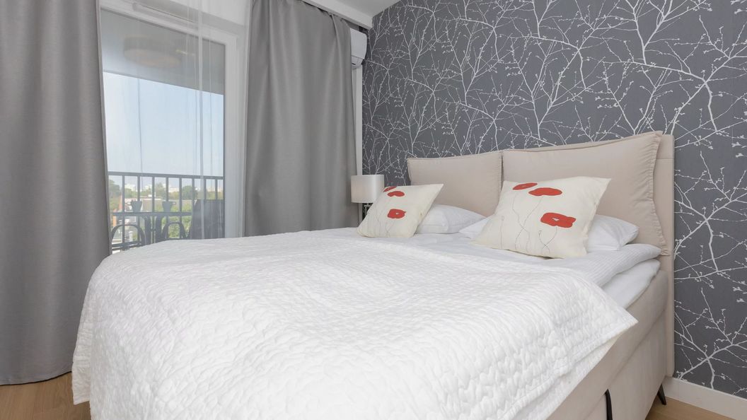 Nowoczesne, klimatyzowane studio oferuje eleganckie miejsce noclegowe dla 4 osób. To elegancko i stylowo urządzone mieszkanie o powierzchni 35 m² metrów to perfekcyjny wybór na wypad do Stolicy dla pary, przyjaciół lub samotny wyjazd służbowy. Powierzchnia mieszkalna składa się z salonu z sofą, aneksem kuchennym i miejscem do spożywania posiłków, części sypialnianej z łóżkiem podwójnym oraz łazienki z prysznicem. Do mieszkania przynależy balkon z meblami ogrodowymi i widokiem na okolicę, który jest doskonałym miejscem na filiżankę porannej kawy na dzień dobry. Gustowne umeblowanie oraz modne dodatki wpływają na doskonały klimat apartamentu. Wyposażenie multimedialne obejmuje nowoczesny telewizor z kanałami kablowymi oraz dostęp do szybkiego, bezpłatnego połączenia WiFi. Apartament zaopatrzony jest we wszystkie podstawy niezbędne do wypoczynku. Dla ułatwienia rozpoczęcia każdego pobytu zapewniony jest bezpłatny zestaw kosmetyków (mydło, szampon i żel pod prysznic), ręczniki oraz pościel. Dodatkowo, do mieszkania przynależy miejsce postojowe na platformie w garażu podziemnym.