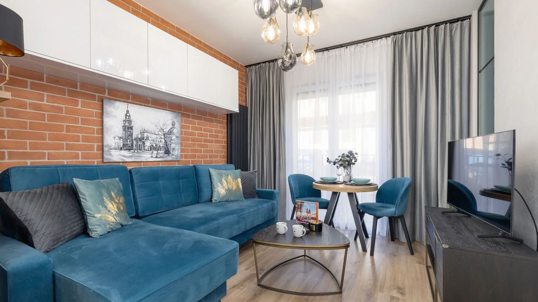 Nowoczesny, klimatyzowany apartament z jedną sypialnią, to idealna propozycja na wypad do Krakowa dla pary, lub grupki przyjaciół. To mieszkanie łączy doskonałą lokalizację, z perfekcyjnym wystrojem. Wnętrze o powierzchni 30 m² składa się z pięknego salonu z aneksem kuchennym, oddzielnej sypialni oraz stylowej łazienki z prysznicem, dzięki czemu jest odpowiednim miejscem noclegowym dla 4 osób. Estetyczne wykończenie z dbałością od detale, modne dodatki oraz nowoczesne umeblowanie sprawiają, że apartament trafi w gust nawet najbardziej wymagających z gości. Spójna paleta barw, czyli połączenie śnieżnej bieli i grafitu z z niebieskimi dodatkami w szlachetnym odcieniu, podkreśla niezwykły klimat tego miejsca. Kompleksowe wyposażenie kuchenne (piekarnik, ekspres do kawy) oraz łazienkowe (pralka, suszarka do włosów), zapewni gościom komfortowy wypoczynek. W apartamencie się również rozkładany stół, który może również pełnić funkcję biurka - dzięki czemu goście pracujący zdalnie, mogą spokojnie wywiązać się z obowiązków służbowych. Multimedia takie jak telewizor z technologią SmartTV (z platformą Disney Plus) oraz bezpłatne łącze Wi-Fi umilą pobyt gości. Zainstalowana we wnętrzu klimatyzacja zapewni przyjemną temperaturę bez względu na pogodę za oknem. Dodatkowym atutem jest przynależące do apartamentu, prywatne miejsce postojowe. Na początek każdego przyjazdu, na gości czeka bezpłatny zestaw kosmetyków, ręczniki oraz pościel.