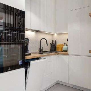 Lodówka z zamrażarką, piekarnik, kuchenka mikrofalowa, ekspres do kawy, czajnik, zmywarka, toster, zestaw naczyń kuchennych i stołowych