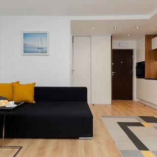 Wyjątkowa lokalizacja oraz stylowe wnętrze – to cechy wyróżniające apartament na warszawskim Mokotowie. Zaaranżowane w wysokim standardzie studio dla 4 osób - to świetne rozwiązanie na pobyt w stolicy. Zostało zaprojektowane z myślą o stworzeniu domowej i gościnnej atmosfery w jednej z najlepszych warszawskich lokalizacji. Estetyczna aranżacja apartamentu oraz wysokiej jakości wyposażenie gwarantują pobyt na najwyższym poziomie. Dopełnieniem wyjątkowej aury mieszkania jest atrakcyjna kolorystyka wnętrza z zastosowaniem nowoczesnych elementów dekoracyjnych. Przestrzeń podzielona jest na studio z aneksem kuchennym oraz łazienkę z prysznicem. Do dyspozycji gości znajduje się łóżko małżeńskie oraz wygodna rozkładana sofa. W apartamencie znajduje się także stół do celebrowania wspólnych posiłków. Do apartamentu przynależy balkon, gdzie można delektować się poranną kawą na świeżym powietrzu lub odpoczywać po dniu pełnym wrażeń. Dla większego komfortu naszych Gości - studio jest klimatyzowane. Apartament jest jasny i funkcjonalnie urządzony, aby zapewnić maksymalną wygodę. Przyjemny pobyt gwarantują ponadto nowoczesne udogodnienia multimedialne, takie jak bezpłatne łącze Wifi czy telewizor typu Smart TV z dostępem do kanałów kablowych. Kompleksowe wyposażenie apartamentu w niezbędne akcesoria i sprzęty kuchenne (piekarnik, zmywarka, płyta elektryczna) jak i łazienkowe (pralka, suszarka do włosów) gwarantuje komfort pobytu. Na dobry początek każdego noclegu zapewniony jest bezpłatny zestaw kosmetyków (mydło, szampon i żel pod prysznic), ręczniki oraz pościel. Dzięki tym zaletom apartament jest idealnym wyborem na beztroski pobyt w stolicy.