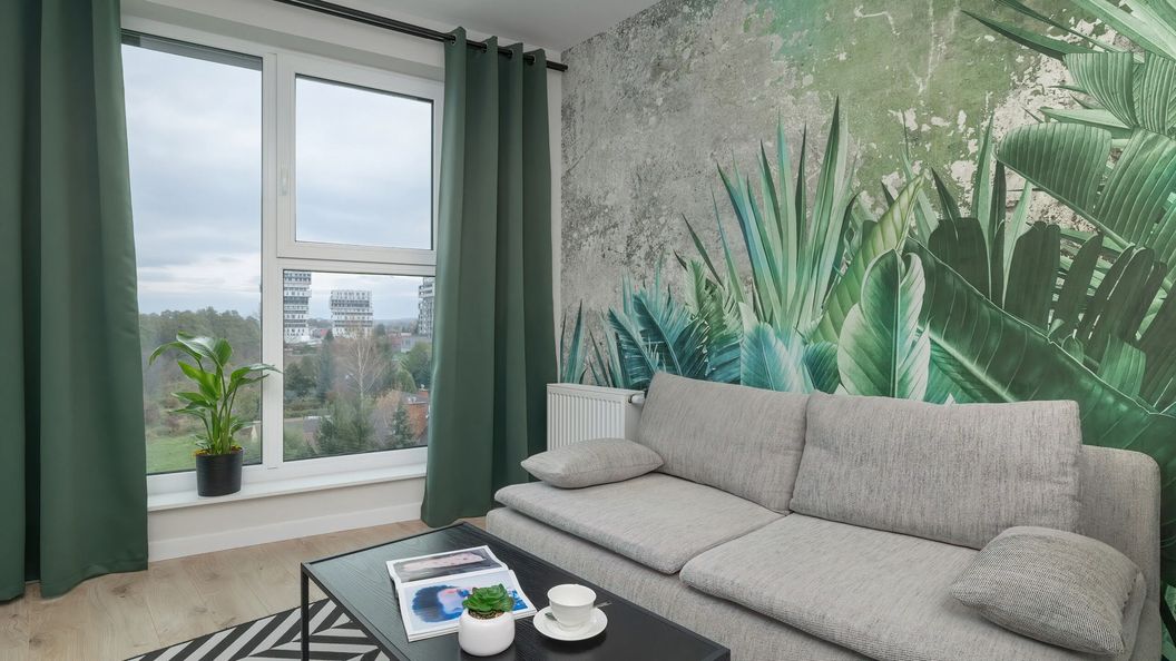 Ten stylowy apartament posiada powierzchnię 35 m2 i z przyjemnością ugości 3 osoby. W jego skład wchodzi salon, sypialnia, balkon, aneks kuchenny oraz łazienka. Wnętrza apartamentu wykończone zostały w sposób nowoczesny z dbałością o najmniejsze szczegóły. Drewniane elementy, jasne kolory ścian oraz wyposażenia rozświetlają jego przestrzeń. Roślinne dodatki oraz elementy dekoracyjne, zapewniają spokojny, przytulny klimat. Apartament posiada salon z rozkładaną sofą, telewizorem oraz stolikiem kawowym. Elegancko urządzona sypialnia wyposażona jest w wygodne podwójne łóżko, szafki nocne i lampki do czytania. Apartament posiada również komfortowy duży balkon z meblami ogrodowymi. Możliwe jest więc wypicie porannej kawy, podczas delektowania się malowniczym widokiem. Aneks kuchenny został zaopatrzony we wszystkie niezbędne przedmioty codziennego użytku takie jak, naczynia sztućce czy garnki. Posiada on również kuchenkę mikrofalową, piekarnik, płytę indukcyjną, czajnik oraz zmywarkę. Dla naszych Gości został przygotowany zestaw do parzenia kawy i herbaty, zestaw kosmetyków, ręczniki, a także świeża pościel. Funkcjonalnie urządzona łazienka z kabiną prysznicową wyposażona została w pralkę, co z pewnością ułatwi dłuższe pobyty. Zapewniony jest również dostęp do Internetu w postaci sieci WIFI. Telewizor w apartamencie posiada funkcję Smart TV, umili to z pewnością wieczorny relaks przy ulubionych filmach. Dla Gości podróżujących samochodem, przygotowane zostało miejsce postojowe w garaży podziemnym, wliczone w cenę pobytu w apartamencie.