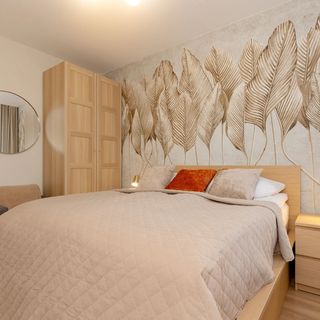 Ten ekskluzywny i przestronny apartament jest przeznaczony dla sześciu osób. Duża powierzchnia sprawia, że jest on komfortowy w użytkowaniu. Dwie sypialnie pozwalają na wygodny wypoczynek – jedno z pomieszczeń jest wyposażone w dwa oddzielne, zestawione ze sobą łóżka, które można rozsunąć, aby ustawić je zgodnie z indywidualnymi preferencjami, podczas gdy w drugim pokoju stoi duże łóżko podwójne. Goście dysponują tutaj łazienką, w której znajduje się wanna, a także oddzielną toaletą. Praktycznie wyposażony aneks kuchenny umożliwia proste i szybkie przygotowywanie posiłków. W salonie znajduje się duży telewizor z dostępem do kanałów kablowych oraz rozkładany narożnik dwuosobowy. W lokalu usytuowane jest również biurko, które umożliwia komfortową pracę zdalną osobom podróżującym w celach służbowych. Rodzice podróżujący z dziećmi mogą skorzystać z dostępnego tutaj łóżeczka niemowlęcego. W salonie znajduje się wyjście na umeblowany balkon, na którym można wypić poranną kawę lub zrelaksować się na powietrzu w trakcie dnia. Apartament jest zlokalizowany na pierwszym piętrze, a goście dysponują tu miejscem postojowym w hali garażowej. Estetyczny wystrój buduje przyjazną atmosferę i sprawia, że można tutaj wypocząć, odrywając się od codziennych obowiązków. Dominują ciepłe kolory, które są urozmaicone przy pomocy wyrazistych akcentów czerni oraz ciemnej zieleni.