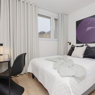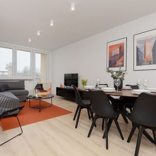Ten w pełni wyposażony apartament z dwoma sypialniami może pomieścić do 6 osób - idealny na wypad z rodziną lub przyjaciółmi. Składa się z salonu z podwójną rozkładaną sofą, 2 sypialni z podwójnymi łóżkami, aneksu kuchennego oraz łazienki z prysznicem. Apartament jest pięknie urządzony z najwyższą dbałością o szczegóły - tworzy to bardzo przytulną i elegancką atmosferę. Goście mają dostęp do Smart TV i bezpłatnej sieci Wi-Fi, a także do wszystkich niezbędnych urządzeń łazienkowych (pralka, suszarka do włosów). Aneks kuchenny oferuje wszystkie sprzęty do samodzielnego gotowania, takie jak płyta indukcyjna, piekarnik i czajnik. Dodatkowo w sypialniach znajdują się biurka z krzesłami, dzięki czemu mieszkanie idealnie nadaje się do pracy zdalnej. Obiekt jest doskonałym wyborem dla każdego, kto ceni sobie komfort i funkcjonalność, ale także estetykę i luksus. Dla ułatwienia rozpoczęcia każdego pobytu zapewniony jest bezpłatny zestaw kosmetyków, ręczniki oraz pościel.