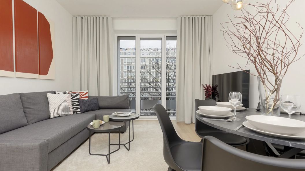 Stylowy apartament mieści się na drugim piętrze w budynku z dostępem do windy. To idealna opcja dla dużych grup lub rodzin – apartament zdolny jest pomieścić aż 8 osób, a jego powierzchnia wynosi 65m2. Do dyspozycji Gości pozostają trzy sypialnie, każda z nich wyposażona jest w wygodne podwójne łóżko. Dodatkowe miejsce noclegowe znajduje się w salonie na rozkładanej sofie mogącej pomieścić dwie osoby. Przygotować pyszny posiłek można dzięki płycie indukcyjnej znajdującej się w aneksie kuchennym. Dostępny jest również piekarnik, a żmudnym myciem naczyń nie należy się martwić, ponieważ apartament posiada zmywarkę. Podczas cieplejszych dni pysznej kawy można napić się na przynależącym do mieszkania balkonie. Łazienka wyposażona jest w prysznic, a na powitanie przygotowano zestaw bezpłatnych kosmetyków. Pralka znajduje się w szafie w przedpokoju. Apartament przystosowany jest dla osób pracujących zdalnie - można w nim znaleźć biurko, a dodatkowy atut stanowi dostęp do szybkiego połączenie WiFi. Telewizor wyposażony jest w funkcję SmartTV+, a jego rozmiar wynosi aż 55 cali. Do apartamentu nie przynależy żadne miejsce parkingowe.
