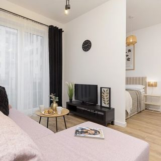 Apartament znajduje się w bardzo atrakcyjnej lokalizacji, przy ul. Kłobuckiej na warszawskim Ursynowie. W bliskiej odległości, zaledwie 1 km zlokalizowany jest Międzynarodowy port lotniczy im. Fryderyka Chopina, z którego dotrzeć można do krajów całego świata. Okolica ta jest również doskonale skomunikowana z innymi częściami Warszawy, bez problemu można dotrzeć na przykład do centrum ze słynnym Pałacem Kultury i Nauki. W około apartamentu dostępnych jest wiele przystanków tramwajowych oraz autobusowych, najbliższy w odległości zaledwie 300 metrów. Liczne restauracje oraz kawiarnie z pewnością przypadną do gustu naszym Gościom, ponieważ wybór jest bardzo szeroki. Tuż obok apartamentu (300 m) zlokalizowany jest supermarket, w którym dokonać można zakupu wszelkich niezbędnych produktów. Apartament położony jest 1.5 km od słynnego Toru Wyścigów Konnych Służewiec. Tor zachwyca nie tylko ciekawą architekturą, ale również wszechobecną przyrodą, wybitnymi końmi oraz wyjątkową atmosferą. Co roku odbywa się tu wiele gonitw, oglądanych przez tysiące turystów z całego świata. To doskonałe miejsce do spędzenia czasu z rodziną, ponieważ dostępnych jest tu wiele atrakcji. Odbywają się także przeróżne wydarzenia, takie jak koncerty, gale czy pokazy mody.