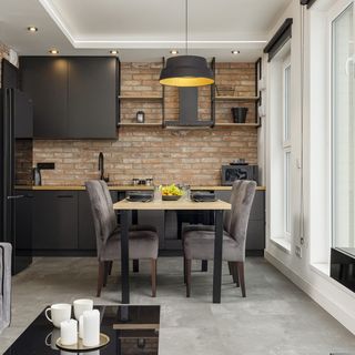 Lodówka z zamrażarką, czajnik, płyta indukcyjna, pochłaniacz pary, zmywarka, piekarnik, zestaw sztućców, garnki, patelnie, przybory kuchenne, toster, kieliszki do wina, pralka, kuchenka mikrofalowa.