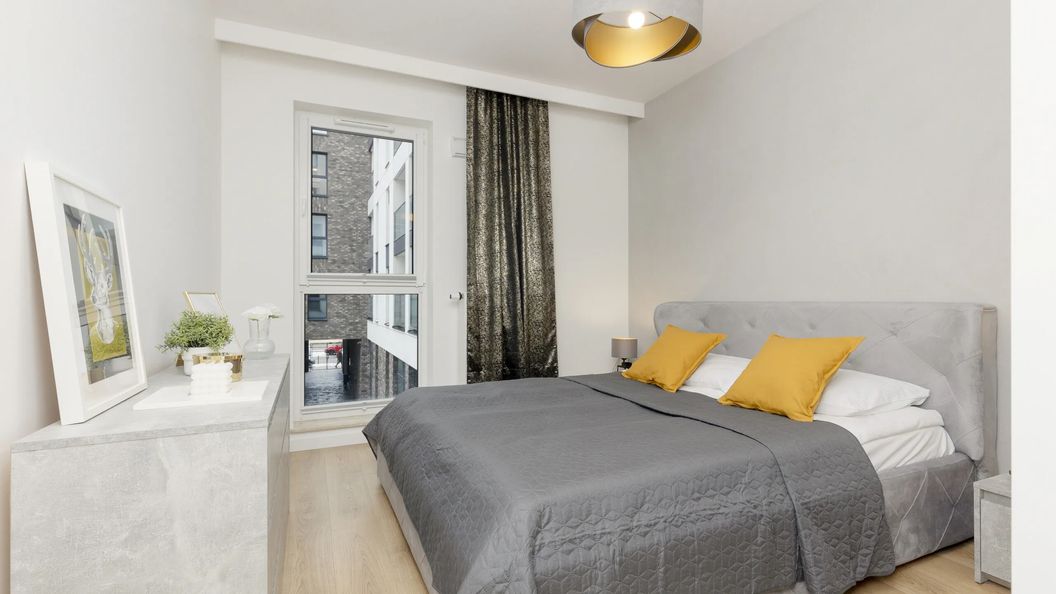 Apartament mieści się na pierwszym piętrze w budynku z dostępem do windy. Przeznaczony jest dla czterech osób, dlatego stanowi idealną okazję dla rodziny lub podróżującej wspólnie grupy. Dwa miejsca noclegowe znajdują się w sypialni na dużym podwójnym łóżku małżeńskim, a kolejne dwa w salonie na rozkładanej sofie. Sofa również idealnie sprawdzi się jako miejsce do wypoczynku po intensywnym dniu. Kuchnia wyposażona jest w płytę indukcyjną i piekarnik, dzięki którym przygotować można pyszny posiłek. Dodatkowe wyposażenie stanowi zmywarka oraz kuchenka mikrofalowa. Podczas cieplejszych dni zaparzonej w ekspresie kawy można napić się na przynależącym do apartamentu balkonie. W nowoczesnej łazience znajduje się prysznic, pralka oraz zestaw bezpłatnych kosmetyków. W całym apartamencie dostępne jest szybkie połączenie WiFi. Telewizor posiada funkcję SmartTV+ oraz dostęp do telewizji kablowej. Do apartamentu nie przynależy żadne miejsce parkingowe, natomiast goście mogą skorzystać z publicznego parkingu pod budynkiem (brak gwarancji miejsca).