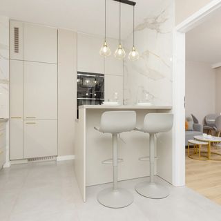 Kuchenka indukcyjna, piekarnik, zmywarka, ekspres do kawy, lodówka, zamrażarka, kuchenka mikrofalowa, czajnik, dwa krzesła