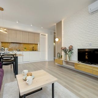 Ten nowoczesny apartament w Warszawie oferuje komfortowe zakwaterowanie dla 6 osób - doskonały wybór na pobyt w stolicy z rodziną lub przyjaciółmi! Przestrzeń mieszkalna, składająca się z jasnego salonu z rozkładaną sofą, świetnie wyposażonego aneksu kuchennego, 2 przytulnych sypialni oraz łazienki z prysznicem, została doskonale zaprojektowana, by zapewnić maksymalny komfort. Naturalne światło wypełnia wnętrze, tworząc przyjemną atmosferę. Apartament urządzono w modnej kolorystyce, co dodaje mu stylu i elegancji. Z salonu można wyjść na niewielki balkon, który stanowi dodatkowy atut tego miejsca. W pełni wyposażony aneks kuchenny pozwala na swobodne przygotowywanie posiłków, a salon z wygodnym stołem i krzesłami to idealne miejsce na wspólne posiłki i spotkania. Goście mogą korzystać z udogodnień multimedialnych, takich jak SmartTV i bezpłatne Wi-Fi. Jedna z sypialni została wyposażona w biurko z krzesłem, co ułatwia pracę zdalną lub naukę. Zapewniono także podstawowe udogodnienia, takie jak zestaw kosmetyków, ręczniki i pościel. Dla rodzin podróżujących z dziećmi dostępne jest łóżeczko dla najmłodszych. Dodatkowo, apartament dysponuje prywatnym miejscem parkingowym w hali garażowej, co jest wygodną opcją, zwłaszcza w stolicy.