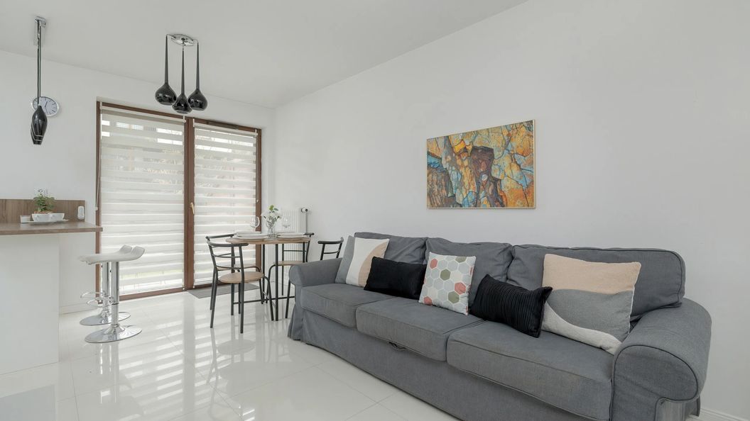 Ten gustownie urządzony apartament o powierzchni 42.20 m2 ma możliwość zakwaterowania 4 osób. Jest to świetne rozwiązanie na rodzinny wyjazd lub dla grupy przyjaciół. Przestrzeń mieszkalna oferuje salon, w pełni wyposażony aneks kuchenny, sypialnię i łazienkę z prysznicem. Do dyspozycji gości jest ogród z meblami ogrodowymi, gdzie podczas ciepłych dni, będzie można delektować się poranną kawą. Nowoczesny wystrój czyni przestrzeń wyjątkowo elegancką. Wnętrze jest jasne, przestronne, funkcjonalnie zaprojektowane i stylowo wykończone, wychodząc naprzeciw wszelkim potrzebom gości. Atmosfera, jaka panuje w części dziennej, sprzyja relaksowi, a wygodna sofa po rozłożeniu, jest dodatkowym miejscem do spania dla dwóch osób. Urocza sypialnia z podwójnym łóżkiem pozwala odpocząć w komfortowych warunkach. Dodatkowo zagospodarowana strefa z biurkiem zapewnia idealną przestrzeń do pracy. Wieczorną rozrywkę zapewnią multimedia, takie jak telewizor z płaskim ekranem oraz dostęp do sieci Wi-Fi. Dodatkowym atutem mieszkania jest pralka, która zwiększy komfort podczas dłuższych pobytów. Na dobry początek pobytu zapewniamy gościom bezpłatny zestaw kosmetyków, ręczniki oraz pościel. Akceptujemy pobyt ze zwierzętami (obowiązuje dodatkowa opłata).