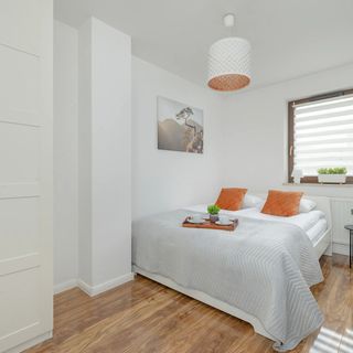 Podwójne łóżko, stolik nocny, szafa, biurko