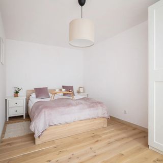 Duże łóżko podwójne, stoliki nocne, szafa