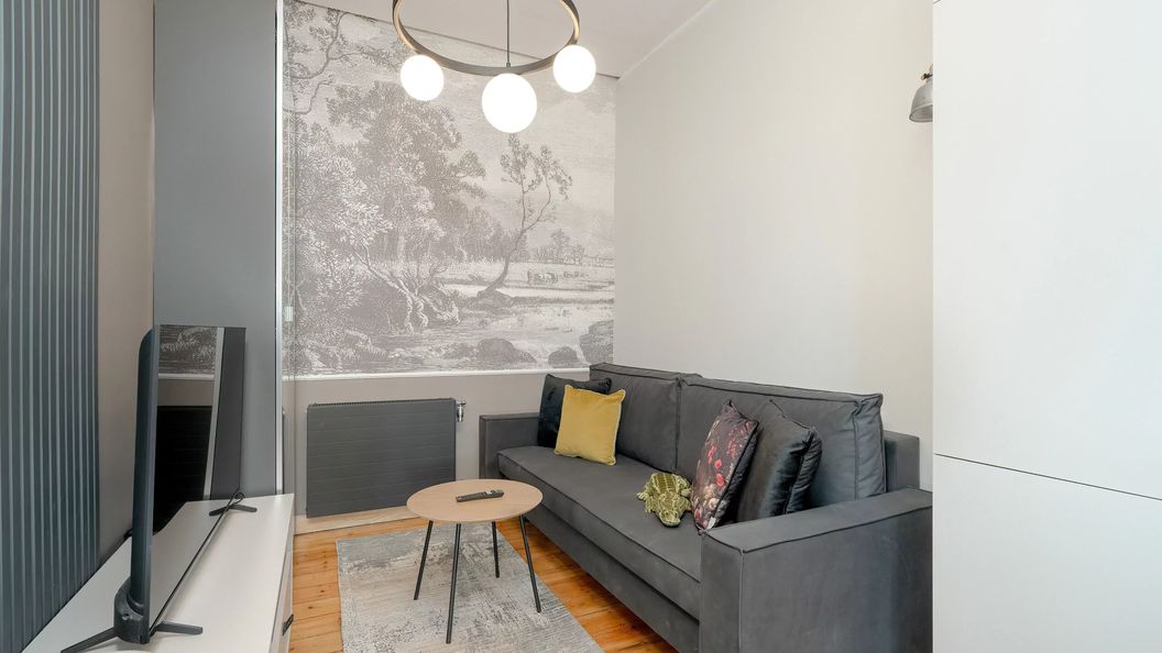 Jasny, przestronny apartament posiada powierzchnię 35 m² i z przyjemnością ugości 4 osoby. Jego wyjątkowa przestrzeń złożona jest z salonu, osobnej sypialni, aneksu kuchennego oraz łazienki. Został on zaprojektowany z dbałością o każdy, najmniejszy szczegół oraz w pełni wyposażony we wszystkie niezbędne meble oraz udogodnienia. W salonie znajduje się podwójna rozkładana sofa, telewizor, komoda oraz stolik kawowy. W części kuchennej dostępny jest stół z krzesłami, przy którym można komfortowo spożywać wspólne posiłki. Aneks kuchenny został w pełni wyposażony we wszystkie, niezbędne do gotowania, przedmioty. Dostępne są w nim takie udogodnienia jak lodówka z zamrażarką, zmywarka, kuchenka mikrofalowa oraz zestaw do parzenia kawy i herbaty. W sypialni znajduje się wygodne łózko małżeńskie, które pozwoli na pełen relaks po całym dniu zwiedzania miasta. Wyposażenie multimedialne apartamentu stanowi nowoczesny telewizor z funkcją SmartTV oraz dostęp do Internetu w postaci sieci WIFI. Przytulna łazienka posiada prysznic, zestaw ręczników oraz suszarkę do włosów. W apartamencie zapewniona jest oczywiście świeża pościel dla każdego naszego Gościa. Duże okna rozświetlające wnętrze oraz jego położenie w zabytkowej kamienicy, sprawiają, że apartament ten jest na prawdę wyjątkowy i będzie doskonałym miejscem noclegowym, podczas wyjazdu do Poznania.