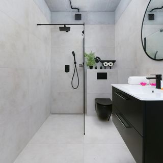Prysznic, WC, umywalka, lustro, ręczniki, pralka