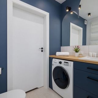 Pralko-suszarka, Prysznic, WC, umywalka, lustro, ręczniki