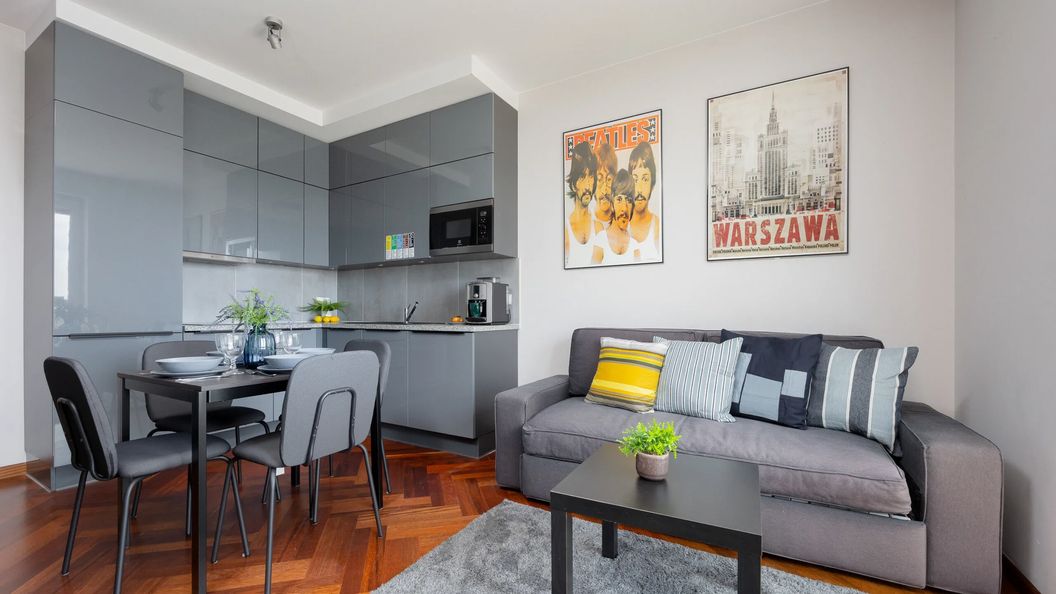 Ten komfortowy apartament znajduje się w Warszawie, w dzielnicy Praga-Południe, przy ulicy Jana Nowaka-Jeziorańskiego. Okolica jest spokojna, przyjazna dla rodzin i z dobrze rozwiniętą lokalną infrastrukturą. Entuzjaści dobrej kuchni docenią znane, klimatyczne restauracje i kawiarnie na ulicy zlokalizowane w niedalekiej odległości. Pomimo bliskości centrum miasta, ta zielona okolica jest idealna do spędzenia rodzinnego czasu na łonie natury: plaża Plażówka Saska nad brzegiem Wisły znajduje się zaledwie 2 km od apartamentu. W sąsiedztwie znajduje się również duży park miejski (650 m) oraz Galeria Handlowa Saska Kępa (1,8 km). Lokalizacja jest bardzo dobrze skomunikowana zarówno z centrum miasta, jak i ze Starym Miastem, dzięki przystankowi autobusowemu 500 m od mieszkania. Korzystając z komunikacji miejskiej, do Śródmieścia można dojechać w około 25 minut. Podróż na Lotnisko Chopina zajmuje około 20 minut samochodem, natomiast na Dworzec Centralny 15 minut.