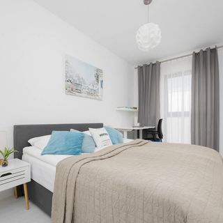 W aneksie kuchennym goście znajdą sprzęty niezbędne do przygotowywania posiłków, w tym płytę indukcyjną, piekarnik z funkcją mikrofali, lodówkę oraz zmywarkę. Obok znajduje się stół z krzesłami. Nowoczesna łazienka z prysznicem została zaopatrzona w pralkę, suszarkę do włosów, a także komplet ręczników i zestaw kosmetyków na start.