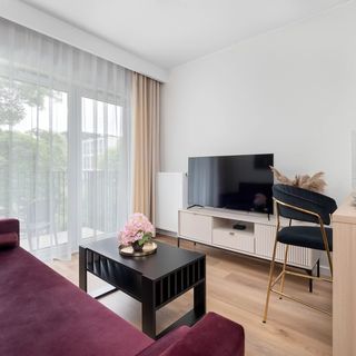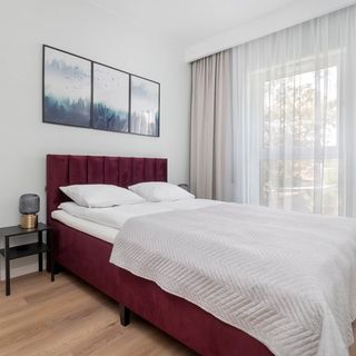 Apartament o powierzchni 36 m2 przeznaczony jest dla 4 osób. Nowoczesne i przestronne wnętrze, zaprojektowane z myślą o komforcie i funkcjonalności. Salon stanowi serce mieszkania. Jasne ściany i duże okna zapewniają naturalne światło w pomieszczeniu. W centrum salonu znajduje się wygodna, a sofa, idealna do relaksu. Naprzeciwko sofy umieszczono niską szafkę RTV z telewizorem. Z salonu można wyjść na przestronny balkon, który jest umeblowany tak, aby zapewnić komfortowy wypoczynek na świeżym powietrzu. Znajduje się tam stolik z krzesłami idealny do spędzania czasu na zewnątrz. Salon płynnie przechodzi w otwarty aneks kuchenny, który jest w pełni wyposażony. Jasne, minimalistyczne szafki kuchenne harmonizują z aranżacją salonu. Łazienka w apartamencie jest elegancka i nowoczesna, wykończona w jasnych kolorach. Znajduje się tam przestronna kabina prysznicowa z deszczownicą, umywalka z dużym lustrem oraz toaleta. Łazienka jest wyposażona w pralkę oraz szuflady na przechowywanie niezbędnych rzeczy. Oddzielna sypialnia to oaza spokoju i komfortu. Znajduje się tam duże, wygodne łóżko z wysokiej jakości pościelą, szafki nocne z lampkami oraz przestronna szafa, zapewniająca dużo miejsca do przechowywania ubrań. Pomieszczenie jest utrzymane w stonowanej kolorystyce, sprzyjającej relaksowi. Apartament szczególnie przypadnie do gustu osobom podróżującym z ze swoimi pupilami, ponieważ jest przyjazny zwierzętom.