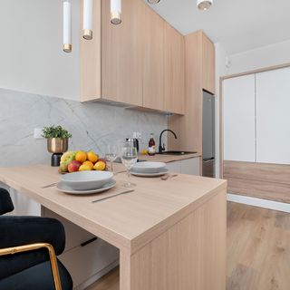 Lodówka z zamrażarką, płyta indukcyjna, czajnik elektryczny, naczynia kuchenne i stołowe, zmywarka