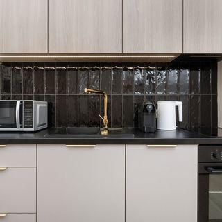 Płyta indukcyjna, lodówka z zamrażarką, kuchenka mikrofalowa, zmywarka, piekarnik, ekspres do kawy (kapsułkowy), zestaw sztućców i naczyń, przybory kuchenne, czajnik elektryczny