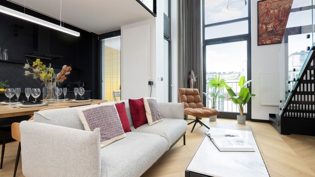 Apartament Prestiż o powierzchni 69.5 m² oferuje komfortowe zakwaterowanie dla 4 osób. Składa się z przestronnego salonu z aneksem kuchennym, sypialni na antresoli, dwóch łazienek z prysznicem oraz garderoby. Dodatkowo, apartament posiada balkon z meblami ogrodowymi, idealny na poranną kawę lub relaks na świeżym powietrzu po pełnym wrażeń dniu. Wnętrza zachwycają nowoczesnym wystrojem, gdzie jasne barwy przeplatają się z czernią, tworząc harmonijną atmosferę pełną elegancji. Gustownie dobrane dodatki nadają wnętrzu charakteru i uroku, a całość została urządzona z najwyższą starannością, zapewniając niezwykle przyjemny i komfortowy pobyt. Aneks kuchenny jest wyposażony w wysokiej jakości sprzęty, co sprawia, że gotowanie staje się prawdziwą przyjemnością. W klimatyzowanej sypialni na antresoli znajduje się wygodne podwójne łóżko oraz rozkładana sofa, zapewniająca komfortowy sen. Dodatkowo na antresoli znajduje się garderoba z pralko-suszarką, która jest niezastąpiona, szczególnie podczas długiego pobytu. Nowoczesna łazienka z prysznicem z deszczownicą znajduje się również na antresoli. Dla gości potrzebujących miejsca do pracy, dostępne jest wygodne biurko ułatwiające wykonywanie obowiązków. Wieczorną rozrywkę zapewniają multimedia, takie jak telewizor z płaskim ekranem oraz bezpłatny dostęp do sieci Wi-Fi. Na dobry początek pobytu oferujemy bezpłatny zestaw kosmetyków, ręczniki oraz pościel. Goście podróżujący samochodem mogą skorzystać z bezpłatnego parkingu w garażu podziemnym.