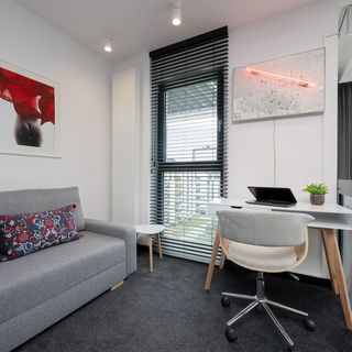 Elegancki apartament przy ulicy Anny German w warszawskiej dzielnicy Żoliborz. Żoliborz to zielona i spokojna część miasta, znana z klimatycznych uliczek, przedwojennej architektury i licznych terenów rekreacyjnych. Osiedle jest świetnie skomunikowane z resztą Warszawy. W pobliżu znajdują się przystanki autobusowe, tramwajowe oraz stacja kolejowa, do której można dojść spacerem w około 10 minut, co zapewnia szybki dojazd do różnych części miasta. Okolica jest doskonale zaopatrzona we wszelkie niezbędne udogodnienia. W pobliżu znajdują się sklepy spożywcze, lokale usługowe oraz restauracje i kawiarnie. Do najbliższego centrum handlowego, Westfield Arkadia, można dojechać w 7 minut autem. Dodatkowym atutem dzielnicy jest bliskość parków. Park Sady Żoliborskie jest położony zaledwie 10 minut spacerem od apartamentu. To przestronny teren, doskonały do spacerów, biegania i relaksu na świeżym powietrzu, z licznymi malowniczymi alejkami. Do Zamku Królewskiego, Rynku Starego Miasta oraz Pałacu Kultury i Nauki można łatwo dotrzeć komunikacją miejską w około 30 minut. Ten apartament jest idealnym wyborem dla tych, którzy cenią wygodę życia w mieście, bliskość zieleni oraz doskonałą infrastrukturę. Dzięki doskonałej komunikacji miejskiej i licznych atrakcjom w okolicy, jest to miejsce idealne dla każdego, kto odwiedza Warszawę.