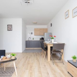 Apartament o powierzchni 38 m² przeznaczony jest dla czterech osób, oferując komfort i funkcjonalność w nowoczesnym wydaniu. Salon z aneksem kuchennym to serce apartamentu, które zostało zaprojektowane z myślą o wygodzie i funkcjonalności. Stonowane kolory i eleganckie dodatki tworzą przytulną atmosferę. Przestronny salon wyposażony jest w nowoczesną sofę, stół z czterema krzesłami oraz telewizor z dostępem do kanałów kablowych. Dzięki dużym oknom wnętrze jest pełne naturalnego światła. Aneks kuchenny, będący integralną częścią salonu, jest w pełni wyposażony w nowoczesne sprzęty, takie jak lodówka, zmywarka, płyta indukcyjna. Wszystkie niezbędne naczynia i przybory kuchenne są do dyspozycji gości. Z salonu można wyjść na przytulny balkon, gdzie można cieszyć się świeżym powietrzem, pijąc poranną kawę lub odpoczywając po całym dniu. Osobna sypialnia to oaza spokoju, zaprojektowana z myślą o zapewnieniu maksymalnego komfortu. Znajduje się w niej wygodne łóżko małżeńskie z wysokiej jakości materacem, szafki nocne z lampkami do czytania oraz przestronna szafa na ubrania. Stonowane kolory i eleganckie dodatki tworzą przytulną atmosferę. Nowoczesna łazienka jest wyposażona w kabinę prysznicową, umywalkę z dużym lustrem oraz toaletę. Dodatkowo, do dyspozycji gości są ręczniki oraz podstawowe kosmetyki.