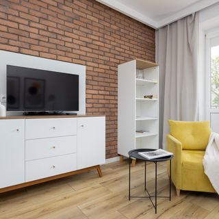 Podwójna rozkładana sofa, TV, stół z krzesłami, stolik kawowy, szafa, biurko