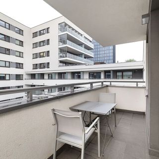 Apartament mieści się w nowoczesnym kompleksie na warszawskiej Woli, w otoczeniu stuletnich drzew. To propozycja zakwaterowania w dobrze skomunikowanej, centralnej części stolicy.