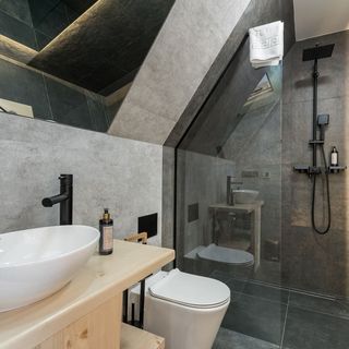 prysznic, WC, umywalka, suszarka do włosów, lustro, ręczniki
