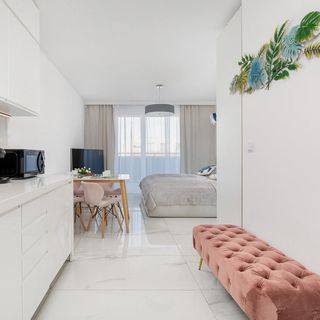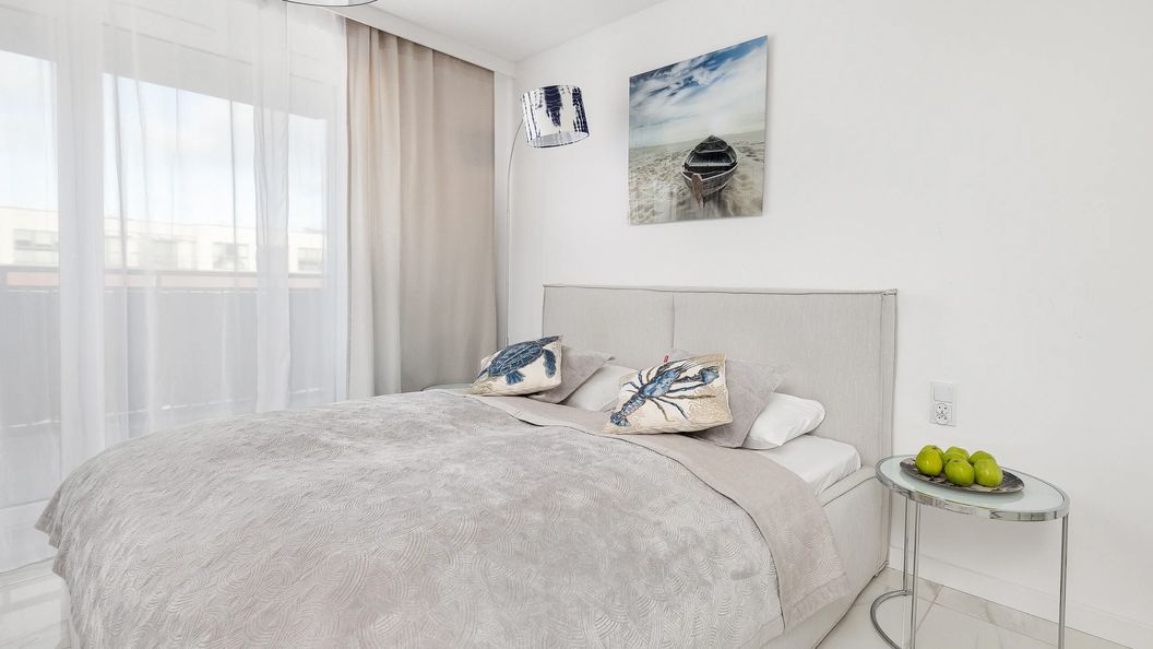 Ten klimatyczny apartament znajduje się na 2. piętrze nowoczesnego budynku. Będzie idealnym wyborem na romantyczny wyjazd nad morze, ponieważ ma możliwość zakwaterowania 2 osób. Przestrzeń apartamentu składa się z salonu z aneksem kuchennym, łazienki z prysznicem oraz balkonu. Apartament wyróżnia się nowoczesnym wystrojem, idealnie dobranym wyposażeniem oraz funkcjonalnością. Za dodatkową opłatą Goście mogą korzystać także z siłowni, strefy dla dzieci, strefy Spa i basenu z jacuzzi. Część główna wyposażona w wygodne łóżko podwójne, telewizor i wyjście na balkon. Stanowi doskonałe miejsce odpoczynku i relaksu. Dodatkowo, zaopatrzony w wysokiej jakości sprzęt, aneks kuchenny umożliwia przyrządzenie ulubionych posiłków. Stół z krzesłami pozwoli na komfortowe spożywanie posiłków i miłe spędzanie czasu. Apartament posiada dostęp do dużego balkonu z meblami ogrodowymi, gdzie można cieszyć się filiżanką ulubionej kawy lub herbaty. Wystrój mieszkania to eleganckie dodatki, jasne ściany i elementy wyposażenia w odcieniach bieli. Tworzy to niezwykle przytulną i przyjemną atmosferę, która sprawi, że nasi Goście będą mogli poczuć się wyjątkowo. Wyposażenie multimedialne stanowi telewizor z funkcją SmartTV oraz dostęp do Internetu w postaci sieci WIFI. Apartament zaopatrzony jest w podstawy niezbędne do udanego wypoczynku. Dla ułatwienia rozpoczęcia każdego pobytu zapewniony jest bezpłatny zestaw kosmetyków (mydło, szampon i żel pod prysznic), ręczniki oraz pościel. Państwa zwierzęta domowe również będą mile widziane, za dodatkową opłatą.