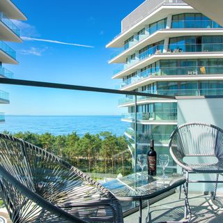 Apartament jest częścią Wave Resort & SPA znajdującego się w Międzyzdrojach na ulicy Gryfa Pomorskiego. W obiekcie dostępnych jest wiele udogodnień dla Gości takich jak strefa spa, basen, sauna oraz siłownia. Podróżujący z dziećmi z pewnością docenią salę zabaw wewnętrzną jak i zewnętrzny plac zabaw. Kurort znajduje się również bardzo blisko plaży, przez co podziwianie zachodów czy wschodów słońca może stać się urlopową codziennością. Do obiektu przynależy również wyjątkowa restauracja, Wave Beach Concept, która umożliwia skosztowanie lokalnej kuchni bezpośrednio na plaży. Od maja do czerwca dodatkowo odbywają się tu również atrakcyjne wydarzenia, które umilają pobyt wczasowiczów. Nie można wymarzyć sobie lepszej lokalizacji na pobyt w Międzyzdrojach! Obiekt znajduje się bezpośrednio przy plaży oraz największych atrakcjach Międzyzdrojów - promenada oraz molo. Tutaj można w pełni korzystać z uroków miasta, świetnych restauracji oraz punktów handlowo-usługowych.