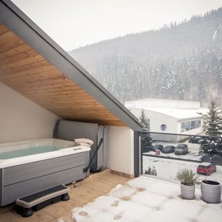 Niewątpliwym atutem jest balkon z meblami ogrodowymi oraz prywatnym jacuzzi, które pozwala na relaks z widokiem na górski krajobraz.
