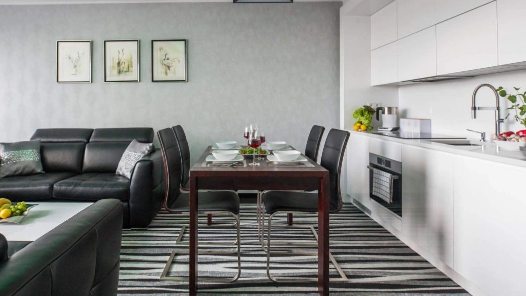 Integralną częścią strefy dziennej jest w pełni wyposażony aneks kuchenny. Do dyspozycji gości oddano płytę indukcyjną, piekarnik, lodówkę oraz zmywarkę. Uzupełnieniem wyposażenia jest ekspres do kawy, czajnik elektryczny oraz komplet naczyń, sztućców i akcesoriów kuchennych, co umożliwia samodzielne przygotowywanie posiłków.