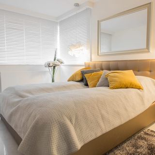 Podwójne łóżko, pościel, stoliki nocne, szafa