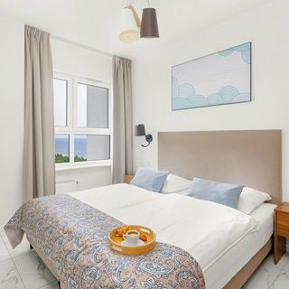 Apartament na 10 piętrze, stworzony z myślą o czterech osobach, zachwyca nowoczesnym wystrojem i przytulną atmosferą. Przestronność i elegancja idą tu w parze ze sobą, a każdy detal został starannie dopracowany, aby zapewnić maksimum komfortu. To idealne miejsce dla osób ceniących sobie nowoczesny styl, komfort i bliskość natury. Główna sypialnia zaprasza do wypoczynku na szerokim, podwójnym łóżku typu king-size, którego miękkość i przestronność gwarantują spokojny sen. W salonie znajduje się podwójna rozkładana sofa. To miejsce, gdzie nowoczesny design spotyka się z domową atmosferą. Jednym z największych atutów apartamentu jest umeblowany balkon, z którego rozpościera się piękny widok na morze. Poranna kawa na balkonie czy wieczorny relaks przy zachodzie słońca – takie chwile pozostaną w pamięci na długo. Aneks kuchenny został wyposażony we wszystkie niezbędne urządzenia, aby codzienne czynności były czystą przyjemnością. Płyta elektryczna, kuchenka mikrofalowa, zmywarka i opiekacz – wszystko to pozwala na przygotowanie zarówno szybkiego śniadania, jak i wykwintnej kolacji. Nie zabrakło również przelewowego ekspresu do kawy, który z pewnością umili poranki. Łazienka, utrzymana w nowoczesnym stylu, oferuje prysznic, idealny do szybkiego odświeżenia po dniu pełnym wrażeń. W apartamencie znajduje się także pralka, co z pewnością przyda się w trakcie dłuższych pobytów. Nowoczesne udogodnienia multimedialne to duży telewizor z płaskim ekranem i funkcją SmartTV+, dzięki któremu można cieszyć się ulubionymi filmami i serialami. Szybkie połączenie WiFi zapewnia nieprzerwaną łączność ze światem, co jest szczególnie ważne zarówno dla tych, którzy pracują zdalnie, jak i dla miłośników multimediów. Apartament jest przyjazny dla zwierząt. Dodatkowym udogodnieniem jest miejsce postojowe w garażu podziemnym.
