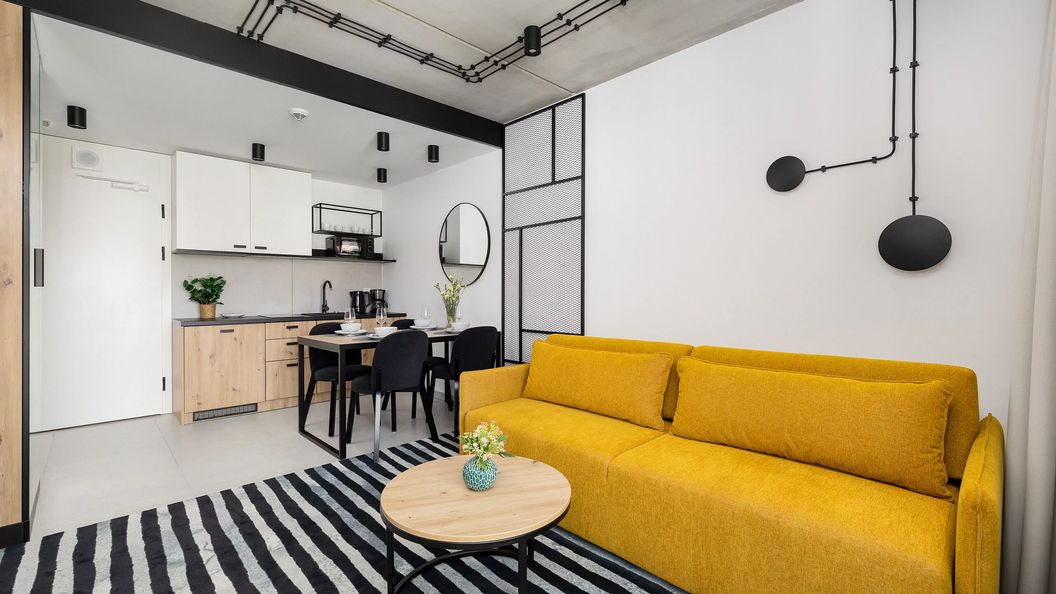 Komfortowy apartament o powierzchni 30 m2 ma możliwość zakwaterowania 4 osób - to idealny wybór na rodzinny wyjazd lub dla pary przyjaciół! Wnętrze wyróżnia się gustownym, przyjemnym i unikalnym wystrojem, nowoczesną estetyką oraz wysoką funkcjonalnością. Na przytulną przestrzeń składa się salon z aneksem kuchennym, sypialnia oraz łazienka z prysznicem. Część dzienna wyposażona w wygodną sofę z funkcją spania zachęca do relaksu i spędzenia czasu z najbliższymi. Z salonu prowadzi wyjście na balkon, który będzie doskonałym miejscem na delektowanie się poranną kawą na świeżym powietrzu. Aneks kuchenny, którego wystrój harmonijnie współgra z pozostałą częścią pomieszczenia, został wyposażony w wysokiej jakości sprzęty AGD, które pozwolą na przygotowanie ulubionych posiłków. Przytulna sypialnia z wygodnym, podwójnym łóżkiem zapewnia spokojny sen i regenerację sił po dniu pełnym wrażeń. Szeroki wachlarz udogodnień oraz kompleksowe wyposażenie apartamentu w niezbędne akcesoria i sprzęty kuchenne (płyta indukcyjna, mikrofalówka, ekspres do kawy) oraz łazienkowe (suszarka do włosów) gwarantują komfortowy pobyt Wieczorną rozrywkę zapewniają multimedia, takie jak telewizor Smart TV z płaskim ekranem, a także bezpłatny dostęp do sieci Wi-Fi. Na dobry początek pobytu zapewniamy gościom bezpłatny zestaw kosmetyków, ręczniki oraz pościel. Miejsce jest przyjazne zwierzętom.