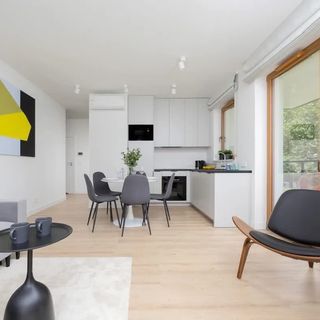 Budynek mieści się przy ulicy Ludwiki 4E na warszawskiej Woli. To doskonałe miejsce dla osób poszukujących komfortowego i dogodnego zakwaterowania w niewielkiej odległości od atrakcji turystycznych oraz wielu udogodnień. Miłośników historii i kultury ucieszy fakt, że obiekt znajduje się zaledwie 1,3 km od Muzeum Powstania Warszawskiego, gdzie Goście mogą zagłębić się w fascynującą historię i dziedzictwo stolicy. Dzięki rozwiniętej infrastrukturze komunikacyjnej w szybki i łatwy sposób można poruszać się po całej Warszawie. Zaledwie 700 m od apartamentu znajduje się stacja metra Płocka oraz liczne przystanki autobusowe i tramwajowe. Podczas pobytu w mieście warto odwiedzić Pałac Kultury i Nauki — ważne miejsce życia kulturalnego i naukowego stolicy, do którego można dotrzeć samochodem w zaledwie dziesięć minut. EXPO XXI, największe w Warszawie centrum targowo-wystawowe, mieści się jedenaście minut spacerem od apartamentu. W pobliżu dostępne są restauracje oferujące kuchnię polską oraz międzynarodową, a także klimatyczne kawiarnie. Do najbliżej położonych należą Pełna Micha (500 m) oraz Coconut Restaurant & Cafe (500 m). W okolicy dostępne są liczne sklepy i punkty handlowo-usługowe, co zapewnia komfort pobytu. Dla osób podróżujących koleją niewątpliwą zaletą jest fakt, iż stacja Warszawa Wola oddalona jest o zaledwie dziesięć minut. Na lotnisko Chopina dojazd samochodem lub taksówką wynosi około dwudziestu minut.