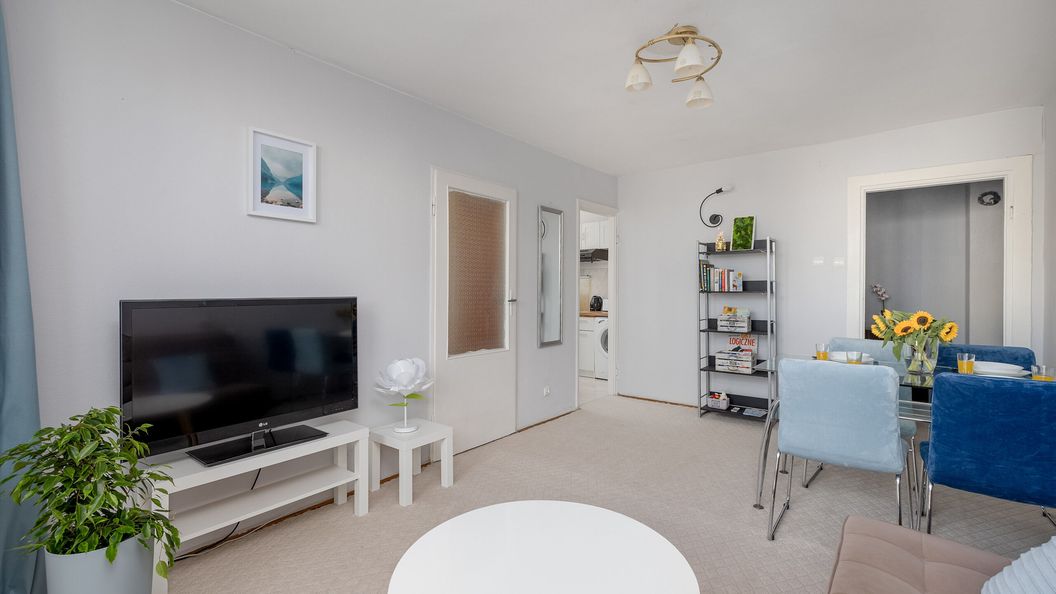 Apartament o powierzchni 38 m² zapewnia komfortowe noclegi dla 4 osób. Centralnym punktem mieszkania jest przestronny salon, w którym znajduje się wygodna, rozkładana kanapa, idealna do wypoczynku i noclegu. W salonie znajduje się również nowoczesny telewizor, który umili wieczory. Z salonu można swobodnie przejść do kuchni, która jest w pełni wyposażona. Znajdują się tam wszystkie niezbędne sprzęty i akcesoria kuchenne, umożliwiające przygotowanie posiłków. Przestrzeń kuchenna jest funkcjonalna i estetycznie zaprojektowana. W sypialni znajduje się wygodne, podwójne łózko, które zapewni komfortowy wypoczynek po dniu pełnym wrażeń. Z sypialni oraz z salonu jest wyjście na mały balkon, z którego można podziwiać widoki na centrum Szczecina. Łazienka w apartamencie jest wyposażona w wannę, co pozwala na relaksujące kąpiele. Wszystkie niezbędne udogodnienia takie jak kosmetyki i ręczniki są dostępne, aby zapewnić komfortowy pobyt. Apartament jest przyjazny zwierzętom, dzięki czemu nasi Goście mogą cieszyć się wakacjami w towarzystwie swojego pupila.