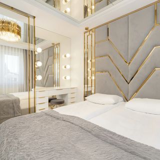Łóżko małżeńskie, toaletka, wyjście do garderoby