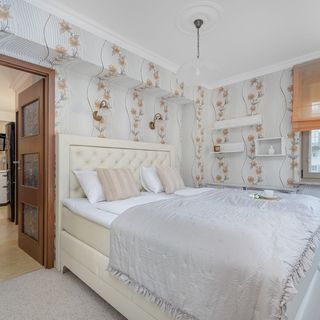 Podwójne łóżko małżeńskie, stoliki nocne, szafa z lustrem