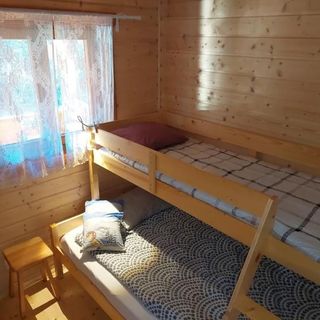 Do dyspozycji gości oddano dwa 5-osobowe domki, każdy z własnym tarasem z widokiem na las. Wnętrze każdego z nich składa się z salonu połączonego z aneksem kuchennym, oddzielnej sypialni oraz łazienki z kabiną prysznicową. W części dziennej znajduje się rozkładana sofa dla 2 osób, natomiast w sypialni przygotowano łóżko podwójne oraz pojedyncze łóżko piętrowe. Istnieje również możliwość wstawienia dostawki dla dziecka do lat 3.