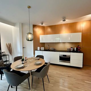 Przestronny apartament o wysokim standardzie może pomieścić do 5 osób. Składa się z przytulnego salonu, w pełni wyposażonej sypialni, wygodnego gabinetu, który doskonale sprawdzi się jako miejsce do pracy lub dodatkowa przestrzeń sypialna, oraz nowoczesnej łazienki. Kuchnia jest w pełni wyposażona, idealna do przygotowywania posiłków.